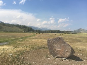 Our experience of the Old West has been such fun! We’ve truly embraced every aspect of it & it’s left a lasting impression on us all. Before we went to Yellowstone, we spent a week in Jackson Hole, WY & the Grand-ness of Grand Teton. Our trek to this neck of the country was not uneventful, to put it lightly. We’ve named Ken’s truck’s GPS “Lola” (from the movie RV) & we’ve had several times where we were screaming or laughing at her…but nothing prepared us for our journey over Teton Pass. Oblivious to what was ahead, we trucked up the much shorter route where Lola directed. The climb was never-ending. The signs on the side of the now narrow road had us in RED alert mode & there was no way to turn around. We thought that Colorado would’ve been our worst grades, but that was nothing! Warning signs said “Steep grades – 10%, next 5 1/2 miles – use low gears”…then another “Runaway truck ramp – 2 1/2 miles LEFT side”…say what??? Basically, if we needed those we would have to pass thru ONcoming traffic?? The warnings were repeated several times. There was total silence in the car as we pulled 21K pounds behind us up the side of the endless mountain pass. Pedal was literally to the metal & RPM’s were in the red with a line of traffic behind us as we PRAYED we could make it to the top. Thanks be to God, we did!! As soon as we pulled over at the top of the pass, smoke rose from the truck & coolant boiled out all over the asphalt. Hood propped & plenty of helpful advice from fellow motorists, we made this our rest area for an hour or so while we cooled, just 5 short miles from our campground.