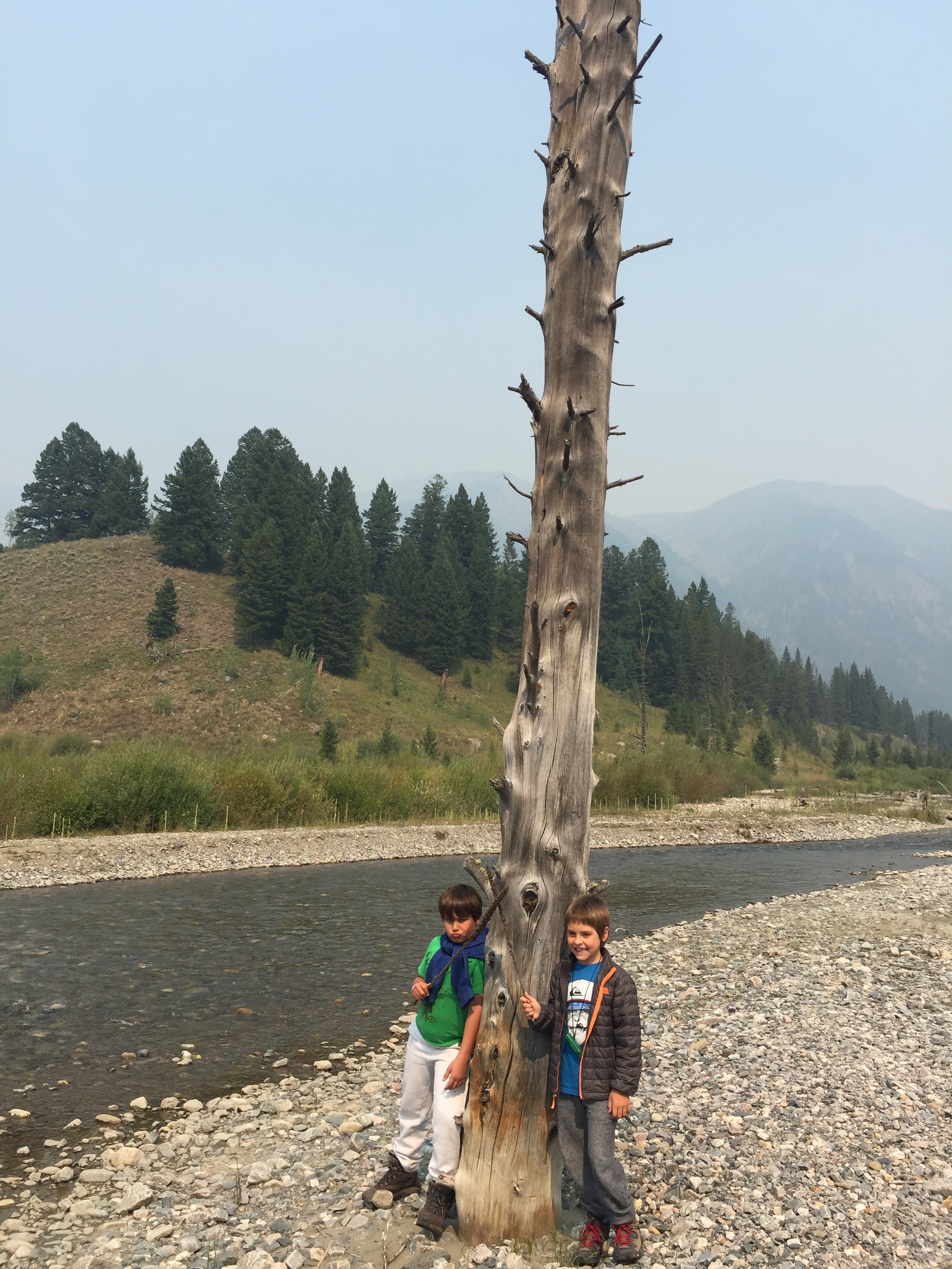 Adventuring over to Quake Lake was another incredible way to spend a day! We ate the famous Camp Fire Lodge breakfast & took in a hike along the Madison River & the site where an earthquake caused a massive landslide in August of 1959. When the landslide blocked the river, that area, which was sadly filled with vacationing campers, began to flood. While some were able to escape to the higher ground of Refuge Point, sadly others died that night. Our hike took us past Ghost Village, where you can see the remains of cabins that floated away. The area filled with water & created a lake 5 miles long & 190 feet deep! Other than the scattered fly-fisherman, we had the serene trail to ourselves, sharing it only with a mama moose & her baby…what a sight!